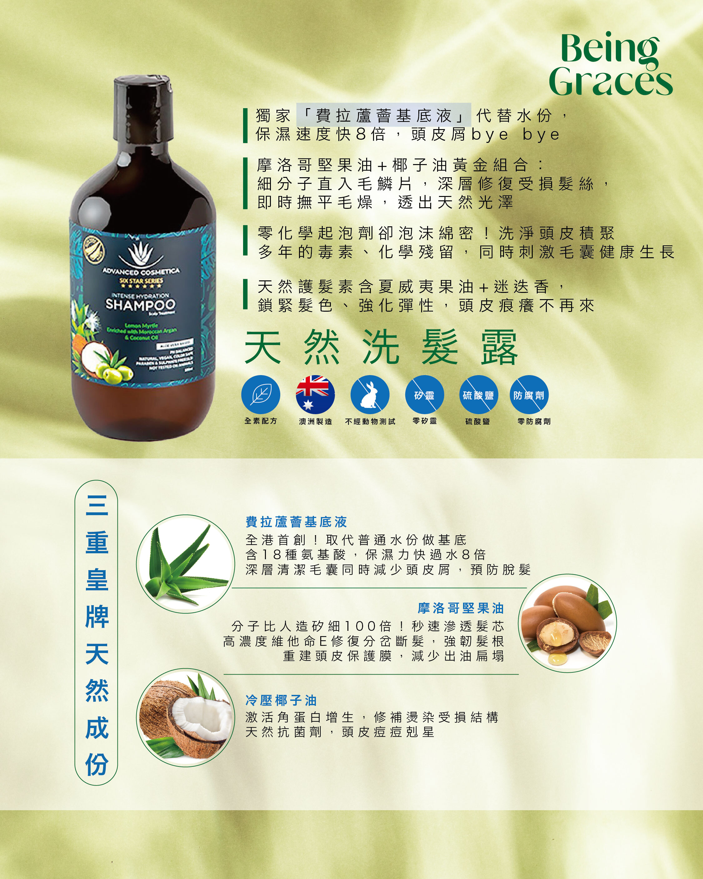 香港潮濕悶熱+化學造型產品殘留,令頭皮毛孔堵塞,毛囊愈洗愈脆弱!傳統含矽洗頭水只會「假滑」掩蓋問題,我哋用三重皇牌天然成份從根源重建健康: