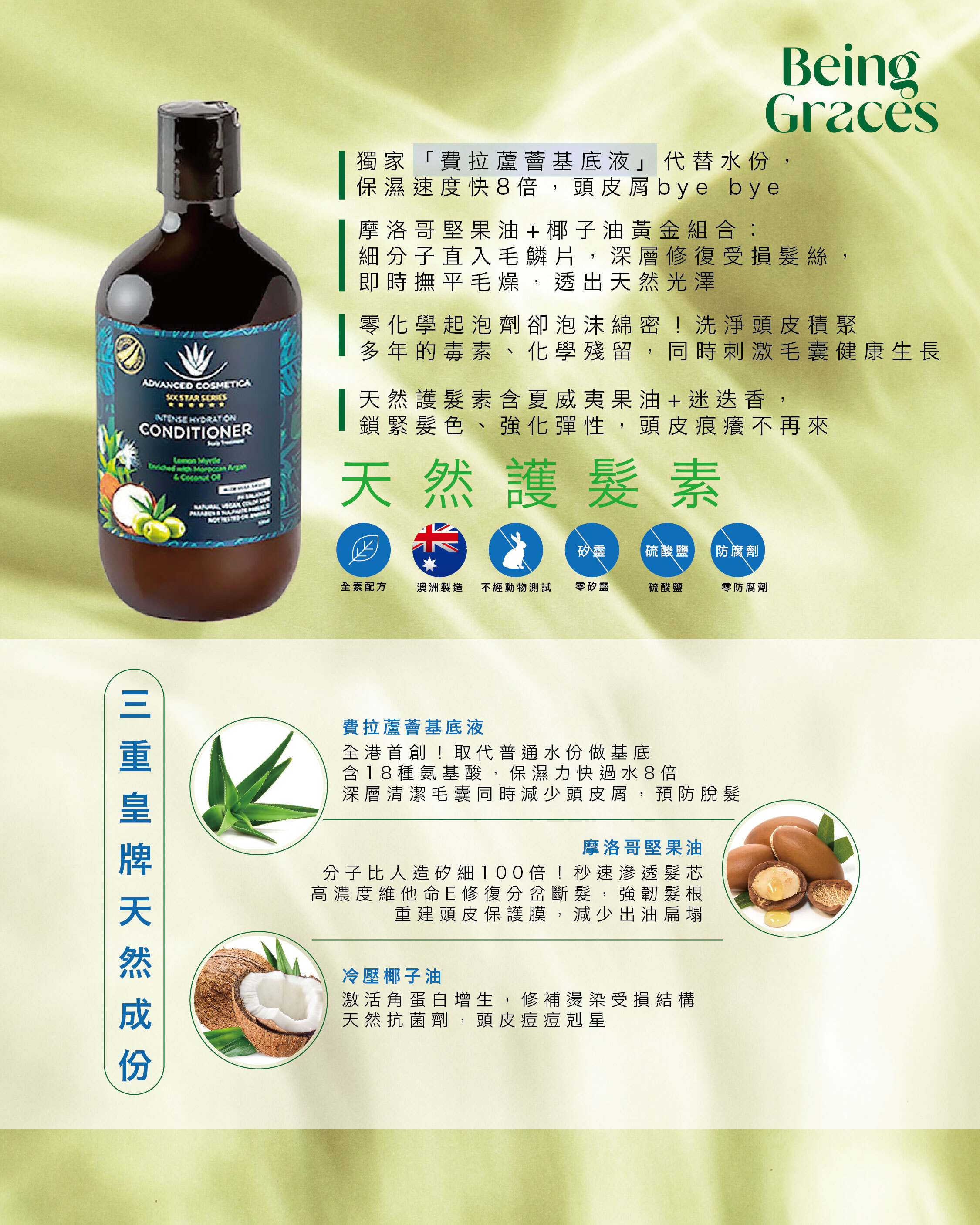 香港潮濕悶熱+化學造型產品殘留,令頭皮毛孔堵塞,毛囊愈洗愈脆弱!傳統含矽洗頭水只會「假滑」掩蓋問題,我哋用三重皇牌天然成份從根源重建健康: